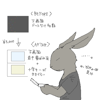 故障ではないんだけど、2年くらい前?から下画面にドット欠けが出始めて、